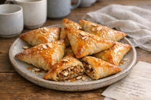 J’ai modelé ces samsas amandes-noisettes en 30 minutes : triangles dorés, sirop miel-fleur d’oranger et zéro ingrédient introuvable (succès garanti à l’iftar) 10 mars 2026