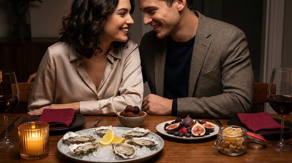 Au-delà du classique duo huîtres-gingembre, d’autres ingrédients courants possèdent des propriétés stimulantes souvent insoupçonnées, à condition de les utiliser correctement. Pour prolonger les effets du repas sans avoir recours à des produits introuvables, il suffit d’ouvrir ses placards. Le premier allié est le chocolat noir, mais pas n’importe lequel : il doit titrer au moins à 70 % de cacao. Il est riche en phényléthylamine, une molécule que le cerveau produit naturellement lorsque l’on est amoureux, favorisant la libération de dopamine.