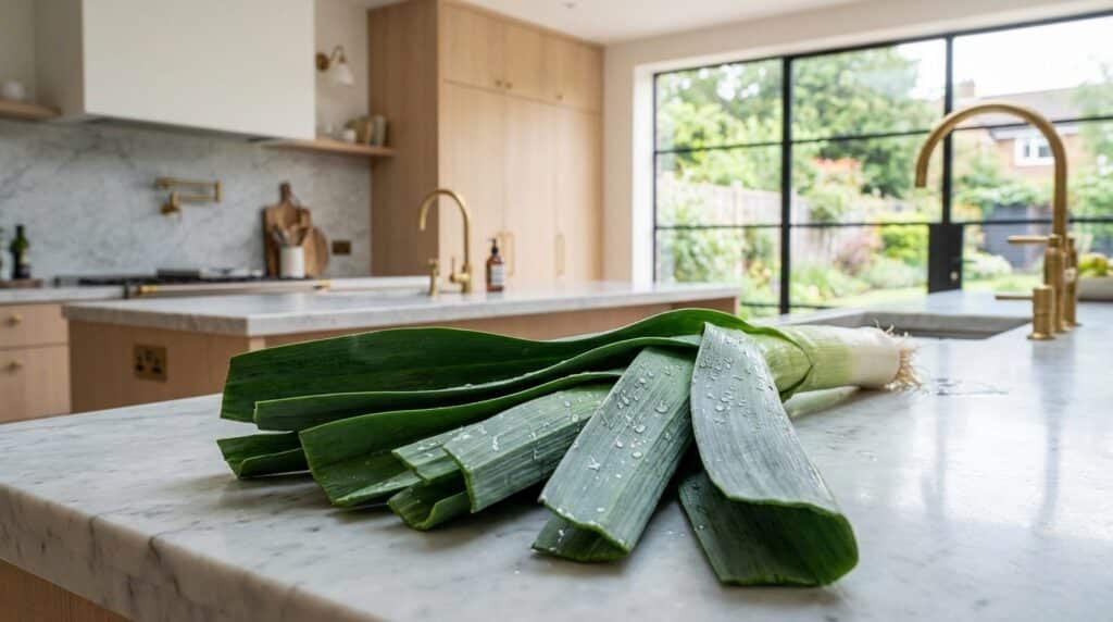Pour adopter ce nouveau réflexe sans effort, l’organisation est essentielle. Chaque préparation de poireaux ne doit pas rimer avec un défi culinaire : il suffit de stocker progressivement. L’astuce consiste à ne plus rien jeter. Après avoir soigneusement lavé les verts de poireaux pour éliminer toute trace de terre, il suffit de les émincer grossièrement et de les placer dans un grand sac de congélation. Ce sac devient alors une véritable économie de saveurs qu’on remplit progressivement sans y réfléchir, semaine après semaine.