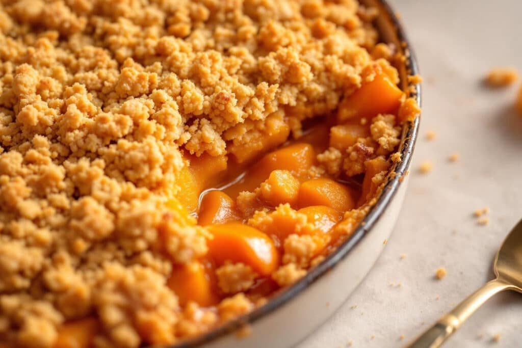 Pour transformer le crumble en dessert de fête, jouer sur les parfums fait toute la différence. Une pincée de gingembre moulu ou un zeste d’orange rappellent les saveurs de Noël et subliment la douceur du kaki. Ajouter quelques noisettes ou noix concassées dans la pâte multiplie les points de croquant. Enfin, glisser quelques fruits secs hachés (abricots, cranberries, figues) révèle un côté encore plus gourmand, parfait pour le réveillon ou un goûter hivernal chaleureux.