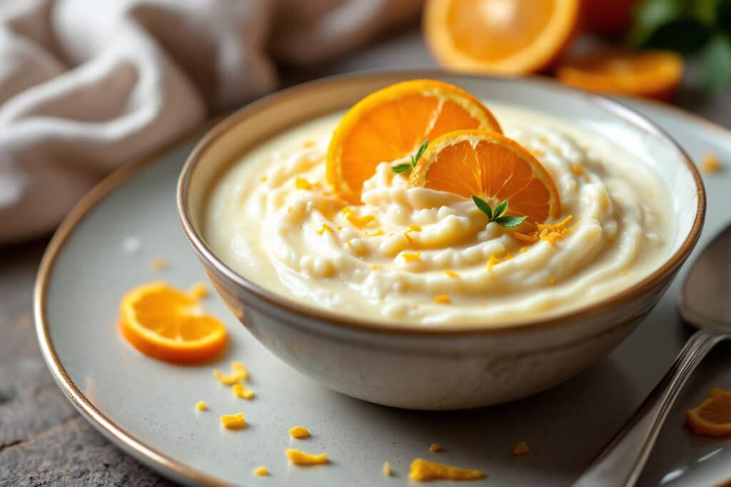 La générosité crémeuse du riz au lait, sublimée par l’orange bio