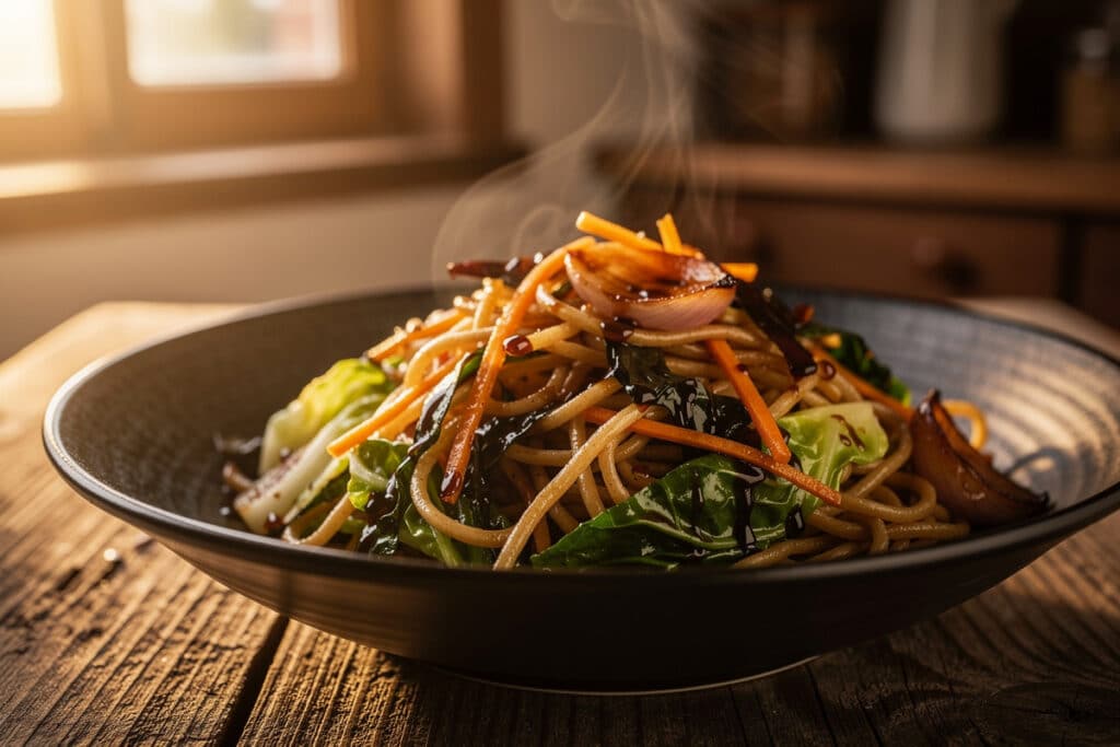 Les secrets d’un wok léger : nouilles sautées au chou-rave et sauce gingembre