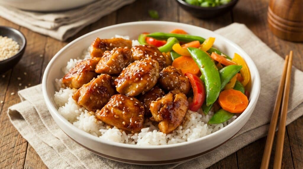 Le vrai tournant se joue en fin de cuisson, quand la poêle est déjà bien chaude et que le poulet est bien doré. À ce moment précis, la sauce ne se contente pas d’arroser : elle enrobe, réduit et se transforme en glaçage. Résultat, une brillance qui donne envie d’attraper les baguettes… ou la fourchette, selon l’humeur.