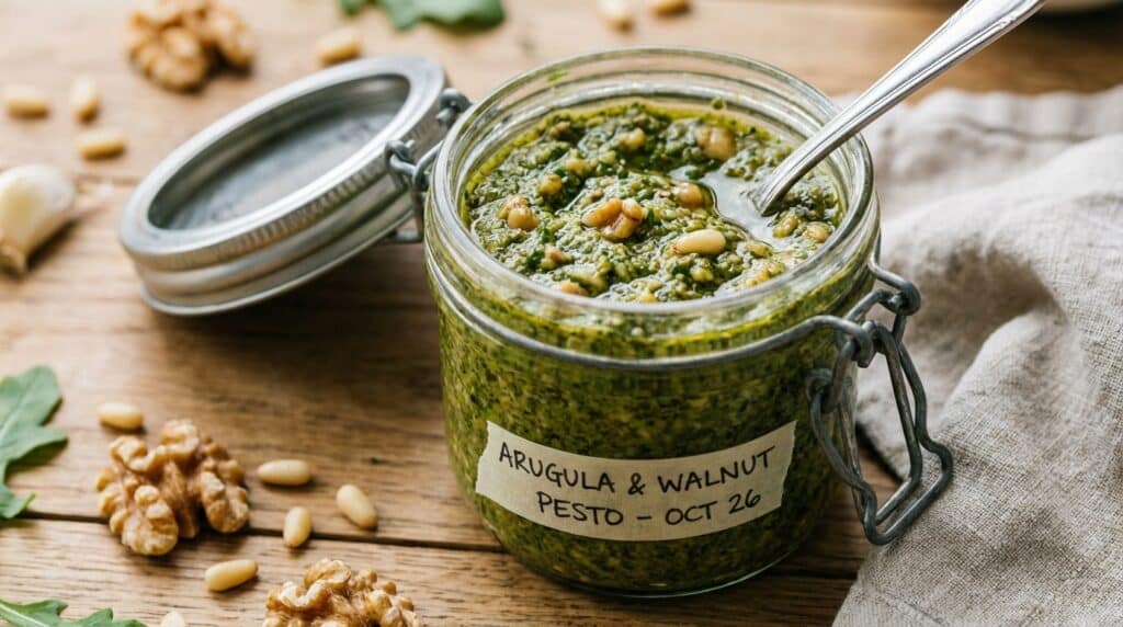 L’autre grand avantage de cette préparation est sa conservation. Contrairement au pesto de basilic qui s’oxyde et noircit rapidement, ce pesto de brocoli garde sa belle couleur et ses saveurs intactes. Conservé dans un pot hermétique au réfrigérateur, avec une fine couche d’huile d’olive en surface pour l’isoler de l’air, il se garde parfaitement pendant une semaine. C’est l’allié idéal du batch cooking pour les soirs de semaine pressés où l’on veut manger sainement sans passer des heures en cuisine.