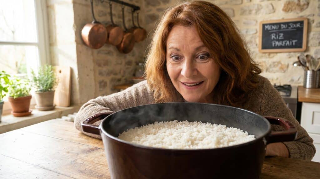C’est ici que se joue la véritable différence de texture. Une fois l’eau et le riz portés à ébullition, il faut couvrir hermétiquement et réduire le feu au minimum possible. À partir de cet instant précis, une règle absolue s’impose : interdiction formelle de soulever le couvercle. Ce n’est pas une simple recommandation, mais une nécessité physique. La cuisson du riz par absorption fonctionne grâce à un équilibre précis entre l’eau liquide et, surtout, la vapeur emprisonnée.