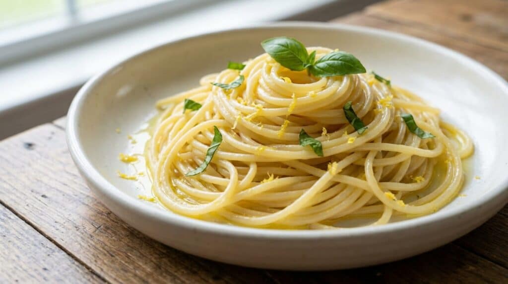 Le basilic frais, incorporé juste avant le service pour conserver toute sa puissance aromatique, intervient comme dernier ingrédient. Ciselé grossièrement ou simplement déchiré à la main, sa saveur herbacée et poivrée vient réveiller la rondeur du mélange crème-parmesan. Ce mariage entre la fraîcheur du citron et la douceur lactée crée une harmonie en bouche surprenante pour une recette si minimaliste. En moins de quinze minutes, le repas est prêt, démontrant qu’il est inutile de passer des heures aux fourneaux pour obtenir un plat digne d’une trattoria italienne.