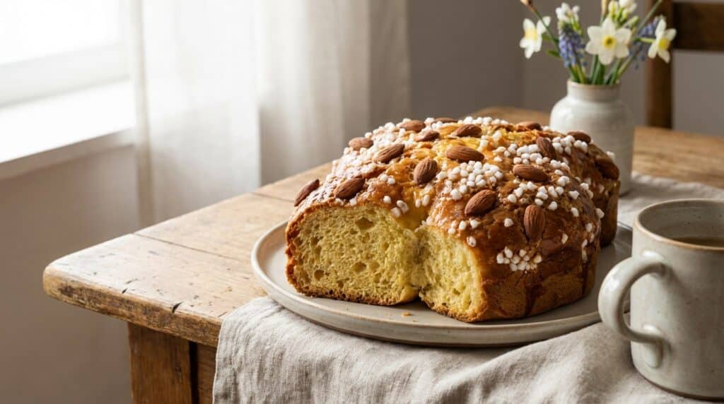 Au début du printemps, quand les vitrines se remplissent de douceurs de fête et que l’air sent presque l’amande, la colomba s’invite comme une promesse de brioche légère. Une tranche encore tiède, un café qui coule, et ce parfum d’agrumes confits qui réveille tout. Mais il arrive que la magie retombe : une mie qui se casse, une bouchée qui accroche, et cette impression de pain brioché un peu sec, même le jour même. En réalité, la colomba di Pasqua n’est pas un simple gâteau, c’est une pâte levée riche, nourrie de beurre, d’œufs et d’écorces d’orange, coiffée d’un glaçage aux amandes. Et parfois, tout se joue dans un geste discret, au bon moment.