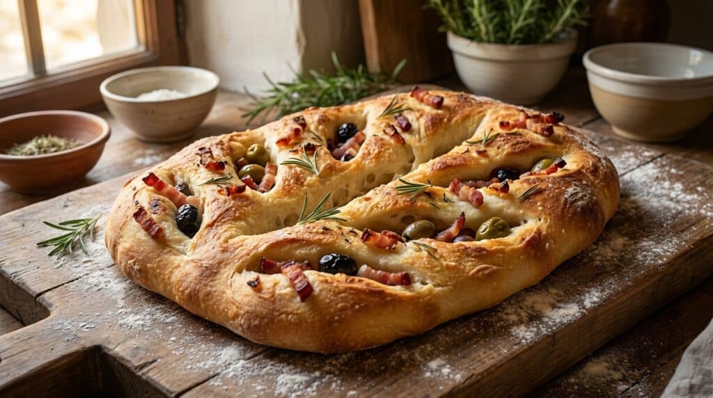 Au final, tout tient dans ce trio : levure réveillée dans l’eau tiède, pétrissage de dix minutes et levée complète avant de garnir et façonner. Une fois ce rythme adopté, la fougasse gagne cette légèreté si plaisante, celle qui donne envie d’en reprendre un morceau « juste pour goûter ». Et la prochaine fournée, plutôt lardons-olives encore, ou une version plus herbes et fromage pour varier les parfums ?