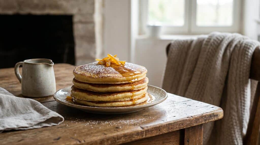 Rien ne vaut la douceur d’un petit-déjeuner fait maison pour réchauffer les matins d’hiver où le ciel reste gris et les températures basses. Une cuisine embaumée par des effluves d’agrumes fraîchement pressés et de pâte dorée à la poêle promet un réconfort immédiat pour toute la famille. En cette saison, alors que les étals regorgent encore de beaux fruits orangés, il serait dommage de se priver de leur vitalité pour transformer des crêpes épaisses classiques en véritables nuages parfumés. L’intégration du fruit entier, du zeste au jus, métamorphose la texture et le goût en seulement quelques minutes. C’est le moment idéal pour réunir petits et grands autour d’une tablée gourmande, prête à savourer ces disques dorés, moelleux à souhait et gorgés de soleil, qui se dégustent encore fumants.