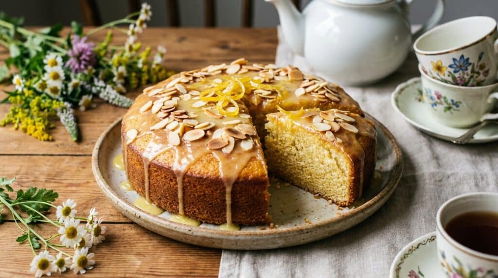 Ce gâteau se garde très bien sous cloche ou dans une boîte, et il devient même encore plus parfumé le lendemain, quand le citron a eu le temps de se poser. Servi à température ambiante, il retrouve son fondant et libère mieux ses notes d’amande, avec un café, un thé noir, ou quelques fraises de printemps à côté.
