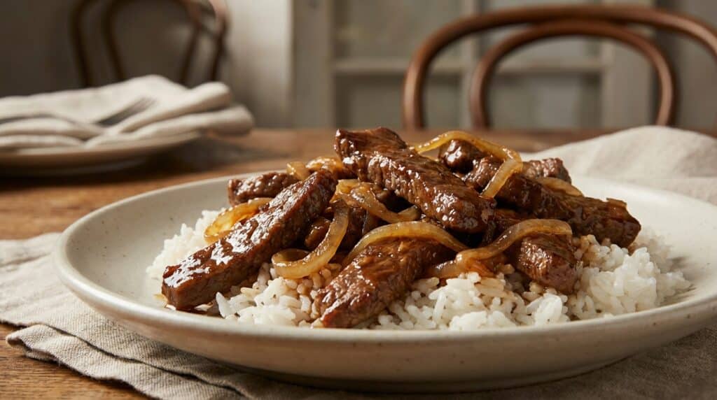 Ce bœuf aux oignons caramélisés prouve qu’il suffit de quelques ingrédients de base et d’un bon tour de main pour transformer le quotidien en fête. C’est une recette qui dépanne autant qu’elle régale, parfaite pour s’initier aux plaisirs du wok à la maison. Alors, ce soir, pourquoi ne pas laisser les effluves de gingembre et de soja embaumer votre cuisine ?
