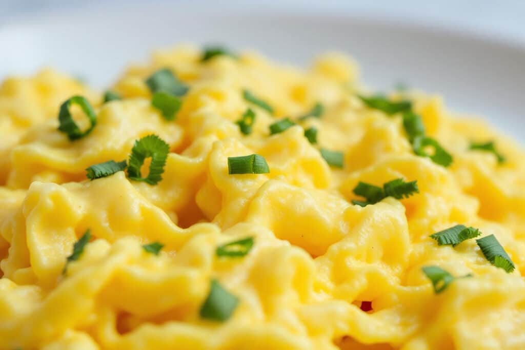 Recette d’œufs brouillés ultras crémeux, cuisson très lente et filet de crème