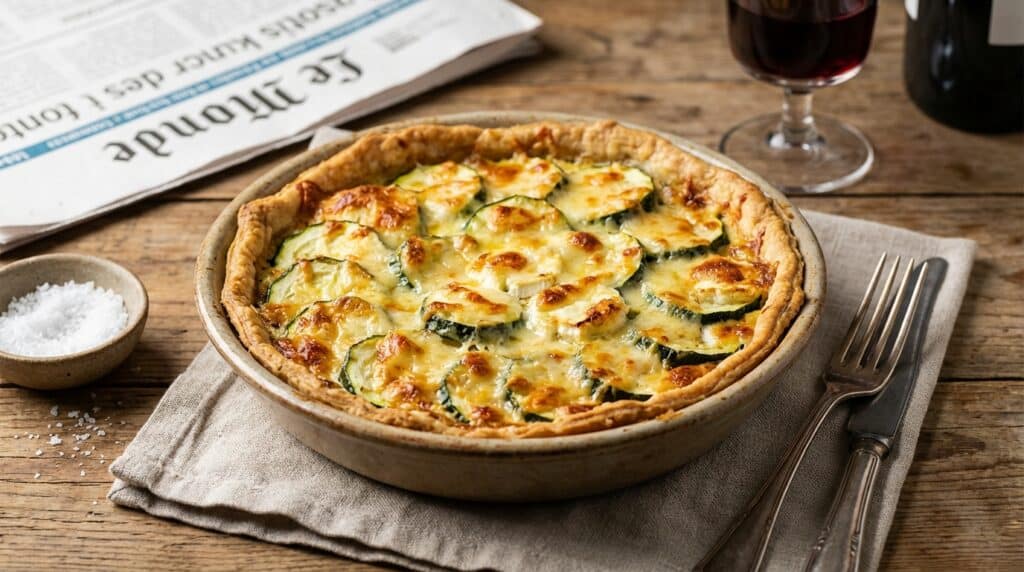 Une courte attente de cinq minutes avant de servir permet au plat de se tenir et aux saveurs de se poser. À la cuillère, le contraste se révèle : fondant de courgettes en dessous, croûte dorée au-dessus.