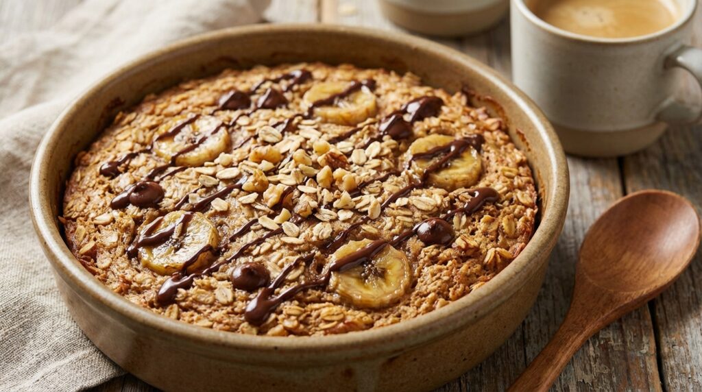 Si ce porridge cuit au four se suffit à lui-même, l’agrémenter de quelques garnitures au moment du service permet de l’élever dans une autre dimension gourmande. Jouer sur les contrastes thermiques est une excellente idée : déposer une cuillère de yaourt à la grecque bien froid ou de fromage blanc sur le porridge encore fumant crée un choc délicieux. La fraîcheur du laitage vient couper la richesse du chocolat et apporte une onctuosité supplémentaire qui lie chaque bouchée. C’est une astuce simple qui transforme un plat rustique en un dessert d’assiette élégant.
