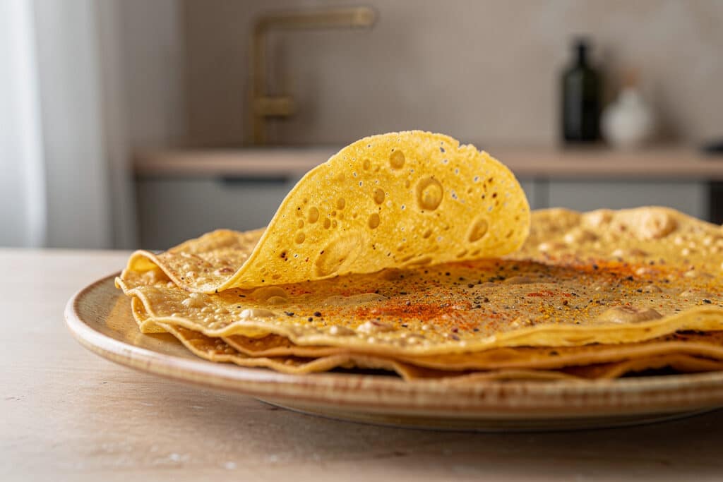 Cette tortilla pois chiches-épices offre la promesse d’un repas aussi simple qu’original, où chaque bouchée conjugue croquant, fondant et caractère bien trempé. Une façon de redécouvrir ce que réserve parfois le fonds du placard, tout en s’offrant un vrai plaisir de table.