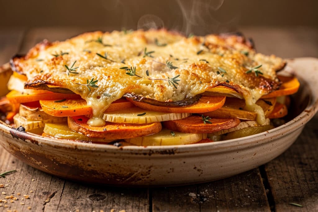 Dans cette alternative, le plat conserve tout son attrait familial et son onctuosité réconfortante ; il fait la part belle aux ingrédients bruts et redevient la star de la saison. Le tout, sans priver personne de ce moment de pur régal partagé… et avec un vrai supplément de calcium grâce au fromage et à la crème.