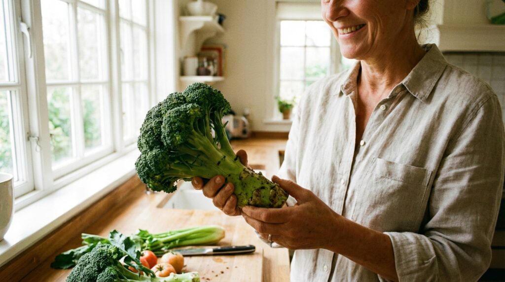 La cuisine quotidienne recèle de petits automatismes destructeurs que l’on reproduit sans même y prêter attention. Lorsque l’on prépare un brocoli, la star incontestée des assiettes vertes, l’attention se focalise inévitablement sur ses inflorescences délicates. Pourtant, le pied de ce légume représente une masse phénoménale qui finit bien trop souvent aux oubliettes. En effleurant simplement la question du poids, on réalise rapidement l’ampleur du gâchis. En effet, sur un légume moyen pesant environ 500 grammes, le tronc brut représente à lui seul près de 200 grammes. Cela signifie que l’on se déleste volontairement de 40 % du poids total du produit fraîchement acheté. Une aberration économique et écologique qui passe généralement totalement inaperçue dans nos cuisines modernes.