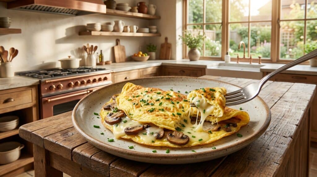 Recette de l’Omelette d’Hiver aux Champignons et à la Ciboulette