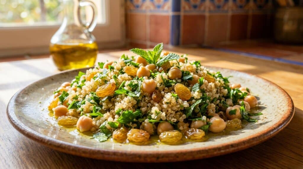 Taboulé de quinoa, pois chiches et raisins secs : la version express qui rassasie