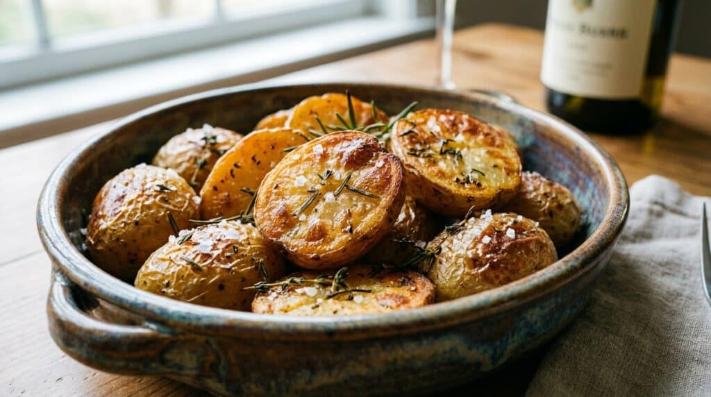 Si la tradition prône l’emploi de la graisse de canard pour son parfum puissant, l’époque incite à des alternatives plus végétales et tout aussi exquises. Une bonne huile d’olive vierge extra, fruitée et de qualité, offre une dorure spectaculaire tout en s’inscrivant dans une démarche végétalienne et saine. Pour illustrer concrètement cette merveilleuse théorie, voici la méthode ultime pour réaliser des pommes de terre rôties végétaliennes parfumées aux herbes printanières. Les ingrédients nécessaires sont des plus simples :