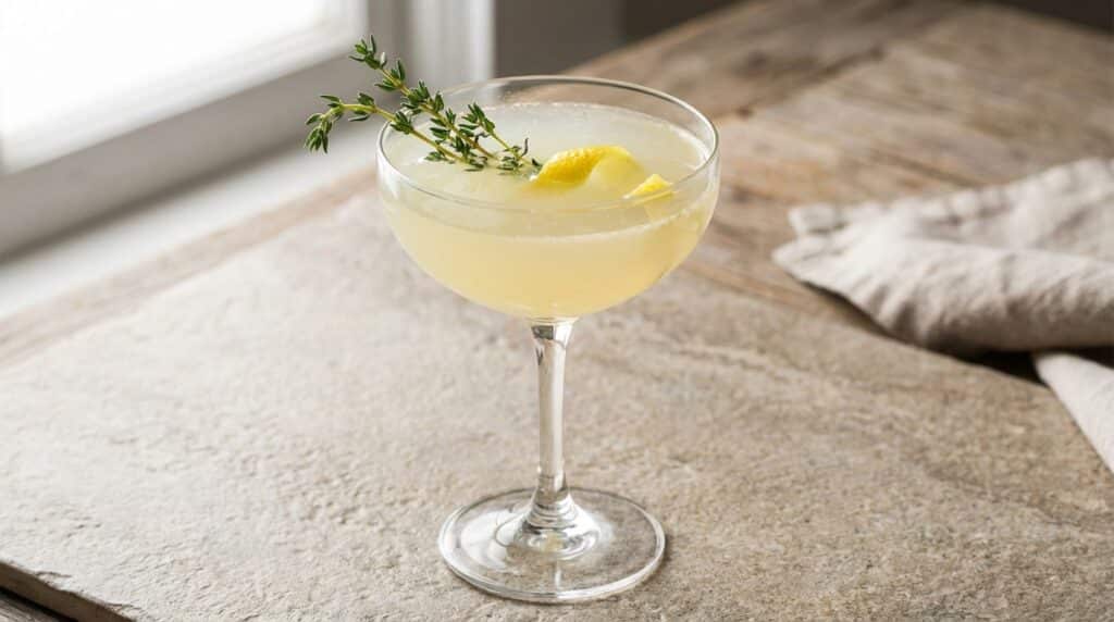 Juste avant de servir, frotter délicatement le bord du verre avec le zeste de citron permet d’amplifier la perception en bouche et de surprendre les convives dès la première gorgée. Un détail, certes, mais qui change tout pour donner une impression de cocktail pro avec un minimum d’effort. Et si le thym venait à vous manquer, une fine branche de romarin fera aussi le job, pour peu qu’on aime les accents méditerranéens affirmés.